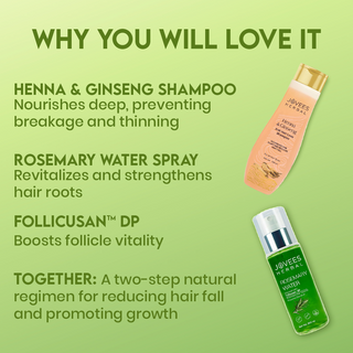 Jovees Hair Growth & Anti-Hairfall Combo / Rosemary Water Spray 200ml + Henna & Ginseng Shampoo 300ml