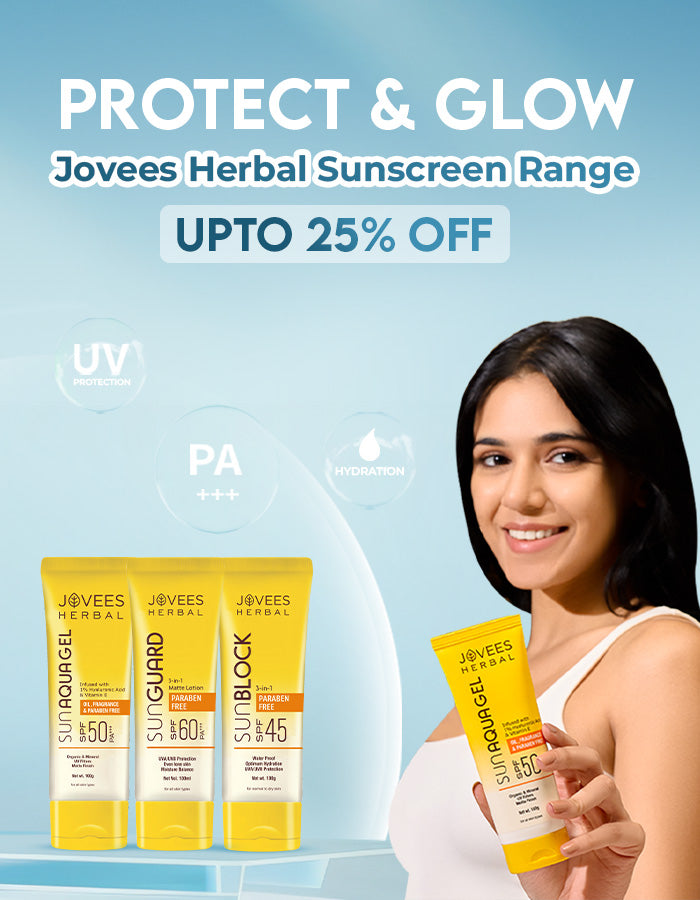 Step into the sun with confidence using Jovees Herbal's advanced sunscreen range, meticulously formulated to protect every skin type from harmful UV rays. Our diverse collection offers something for everyone:...