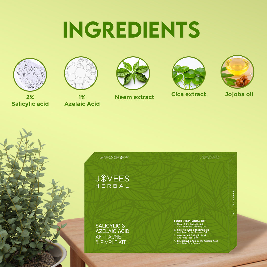 Jovees Salicylic & Azelaic Acid Anti-Acne & Pimple Facial Kit | For Oily & Acne Prone Skin | For Multiple Use | Improves Skin Health & Tone