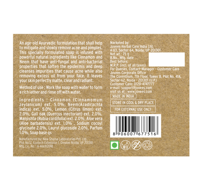 Jovees Cinnamon & Neem Anti Acne Face Bar Soap