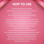 Step 3 - FACE MASSAGE CREAM : Apply on a clean, damp skin. Evenly spread over your face and neck. Massage gently in circular motions for 3-5 minutes. Rinse off with water.