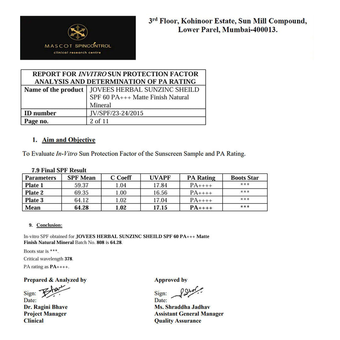 SUN PROTECTION: Jovees Sun Zinc Shield SPF 60 offers exceptional sun protection. Its high SPF blocks harmful UV rays, preventing sunburn and skin damage. The specialized formulation with Zinc Oxide provides broad-spectrum coverage, shielding against UVA and UVB radiation.