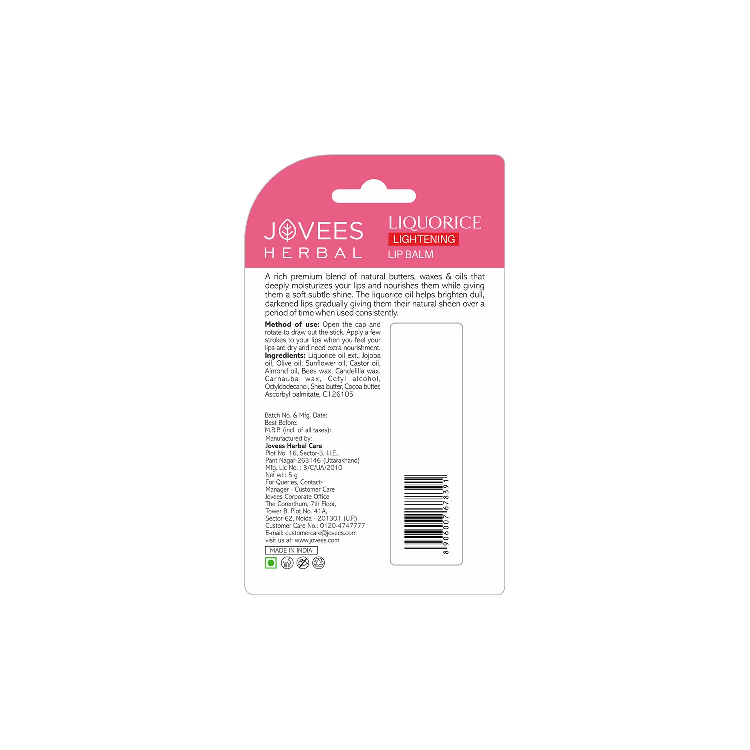 Marketed By: Jovees Herbal Care ,Plot No. 16, Sector-3, I.I.E, , Pant Nagar - 263146 (Uttrakhand)