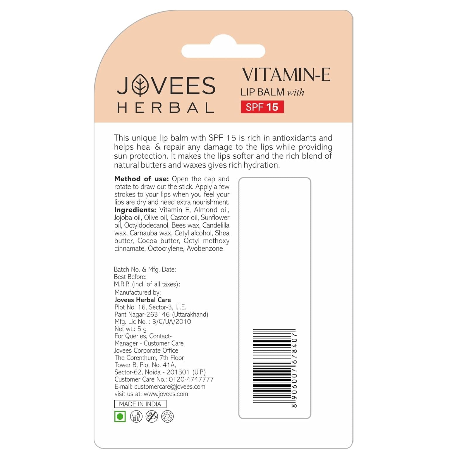 Jovees Vitamin E Lip Balm | SPF 15 | Hydrates and Rejuvenates Dry Lips