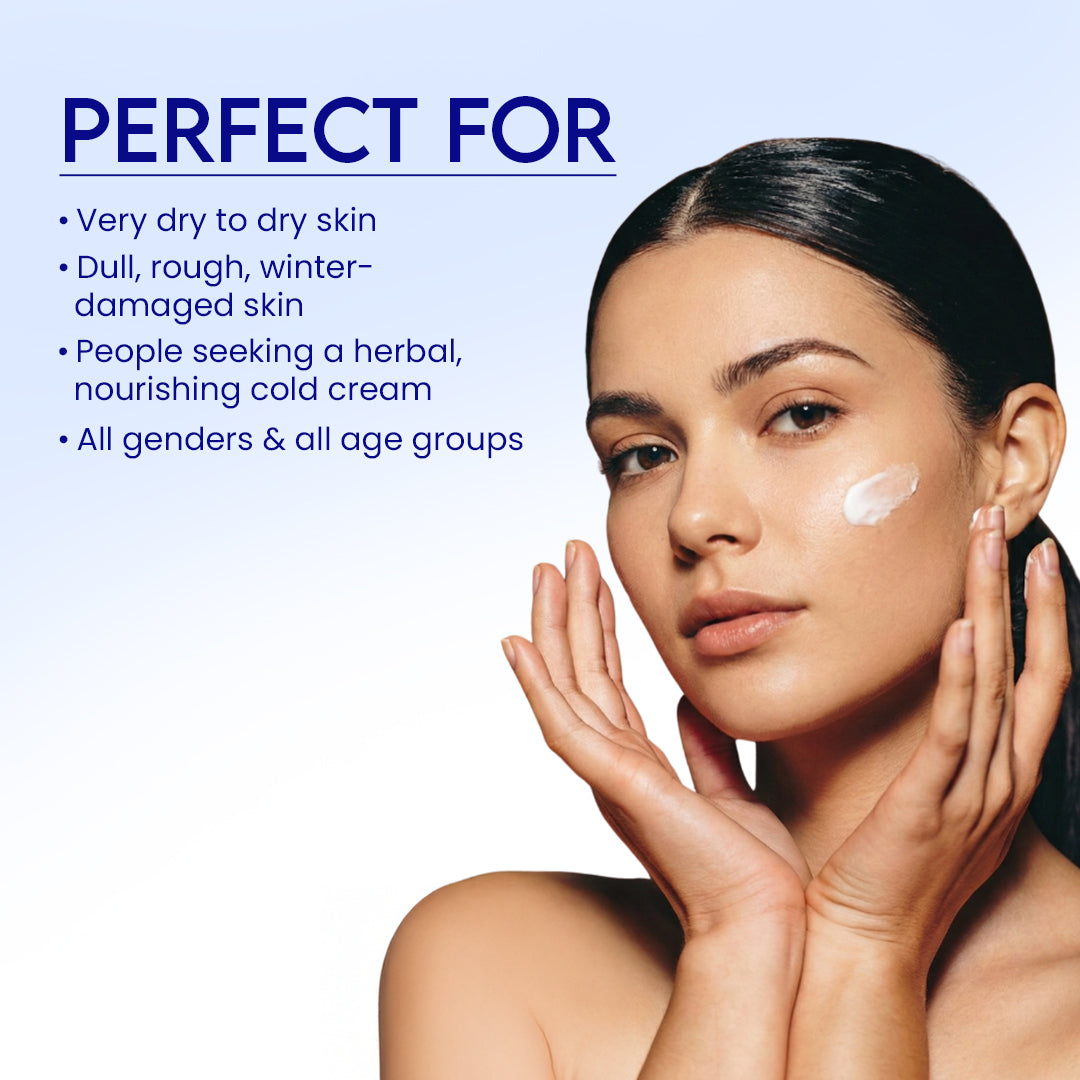 Made with a unique blend of highly concentrated herbs, this cold cream is the perfect solution for dry, patchy, and flaky skin. This cream helps to rehydrate the skin, adds a soothing relief to dryness and itchiness, and makes the skin look visibly brighter.